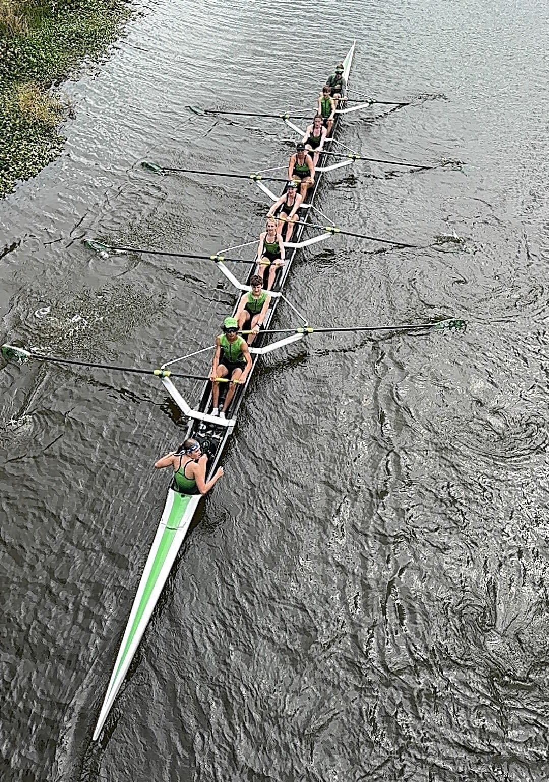Our 8 boat rowing at Sarasota Invitational